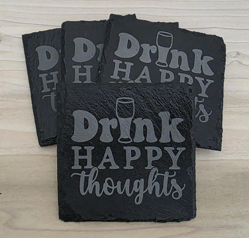 Set of 4 Drink Happy Thoughts Engraved Coasters - Free Shipping